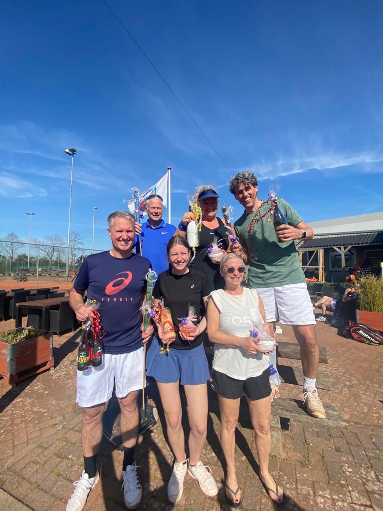 Het openingstoernooi bij De Eemslag staat al jarenlang in het teken van elkaar ontmoeten, gezelligheid en uiteraard tennissen. Na de koffie en wat versnaperingen werden de spelers via loting aan elkaar gekoppeld om vervolgens in dubbels de strijd met elkaar aan te gaan. De toeschouwers werden daarbij getrakteerd op prachtige rally’s, mooie dropshots en hier en daar een bal in het net. Na de nodige zweetdruppels was het tijd om even op adem te komen tijdens een korte pauze om vervolgens nogmaals de zonovergoten banen op te gaan. Met hetzelfde enthousiasme als tijdens de eerste speelronde werd tot de laatste seconde gestreden om de nodige punten.